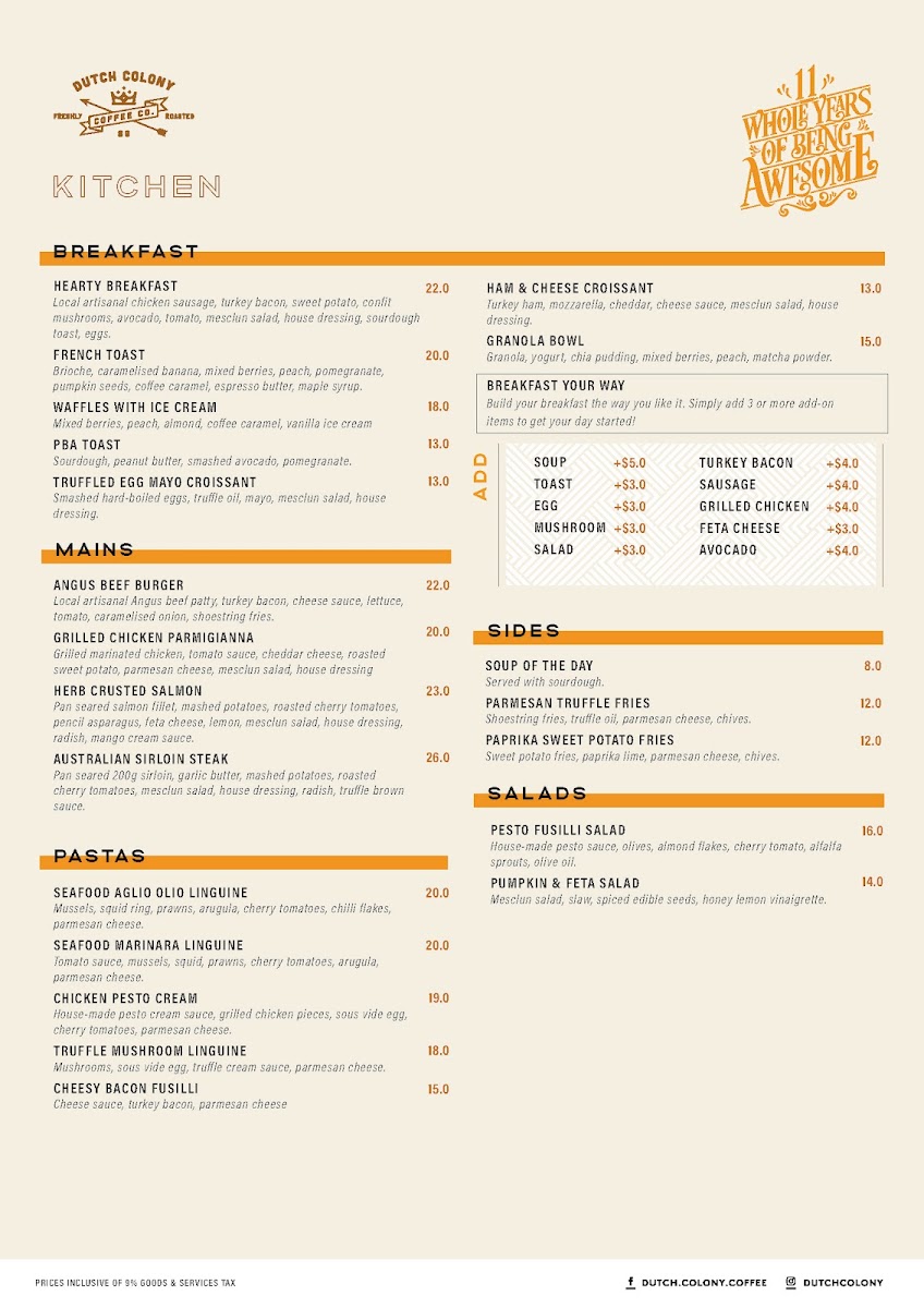 Located at Our Tampines Hub, Dutch Colony Coffee Co. is a haven for coffee enthusiasts and brunch lovers alike. The café boasts a thoughtfully curated menu that highlights rich flavors and quality ingredients. Starting with the enticing Breakfast of Champions, you can choose from two delightful breakfast options paired with refreshing drinks to energize your morning.